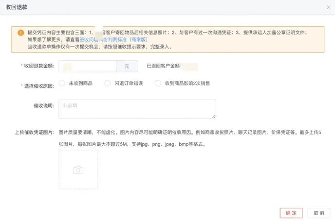 此次新增催收能力指:商家需在收到货物3天内进行催收,逾期不处理服务单将会自动完成。若出现换货商品不符合换货条件时,商家需要与用户先进行沟通,如果达成一致用户付款时(如发生议价场景,催缴金额可修改),可发起催收链接进行支付,商家也可自主取消支付链接;如果未达成一致或长时间联系不上用户,在填写应催收金额催收后,升级京东介入处理并写明具体情况。