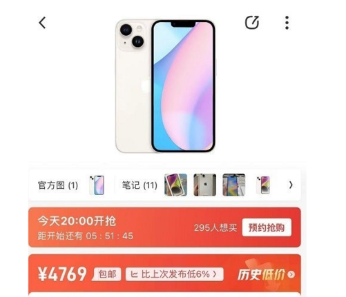 叠加优惠后128GB仅需4769元,作为发布两个月的新机就有4769元的价格促销1000多,多个平台都在促销。iPhone 14 Plus现在立减1000,到手也只要5999。